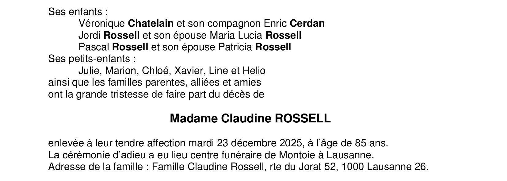 Madame Claudine ROSSELL