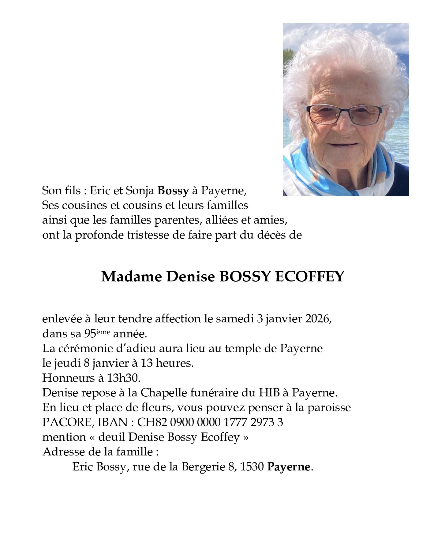Madame Denise BOSSY ECOFFEY