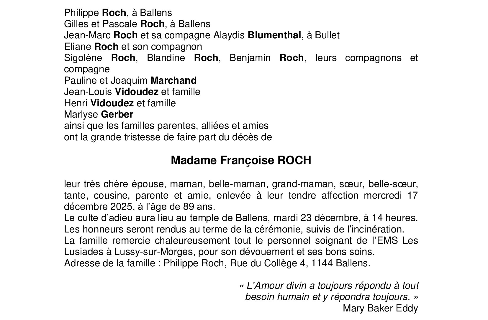 Madame Françoise ROCH