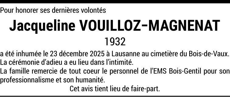 Madame Jacqueline VOUILLOZ-MAGNENAT
