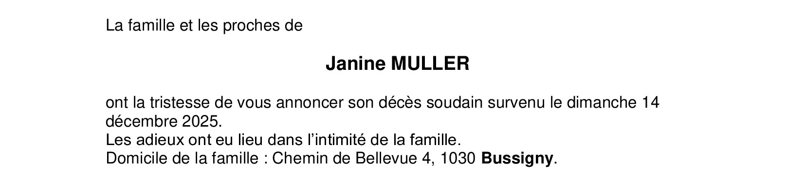 Madame Janine MULLER