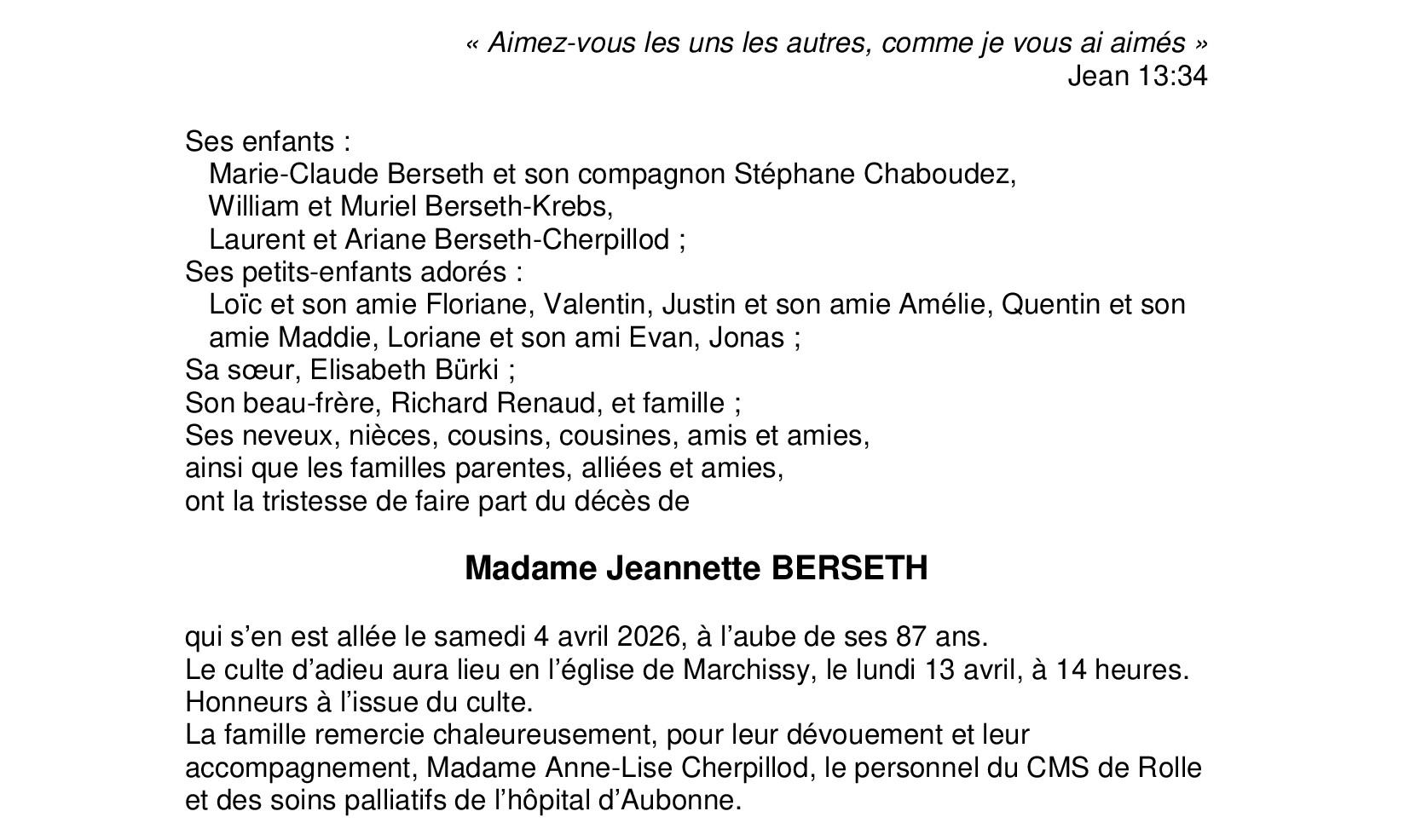 Madame Jeannette BERSETH