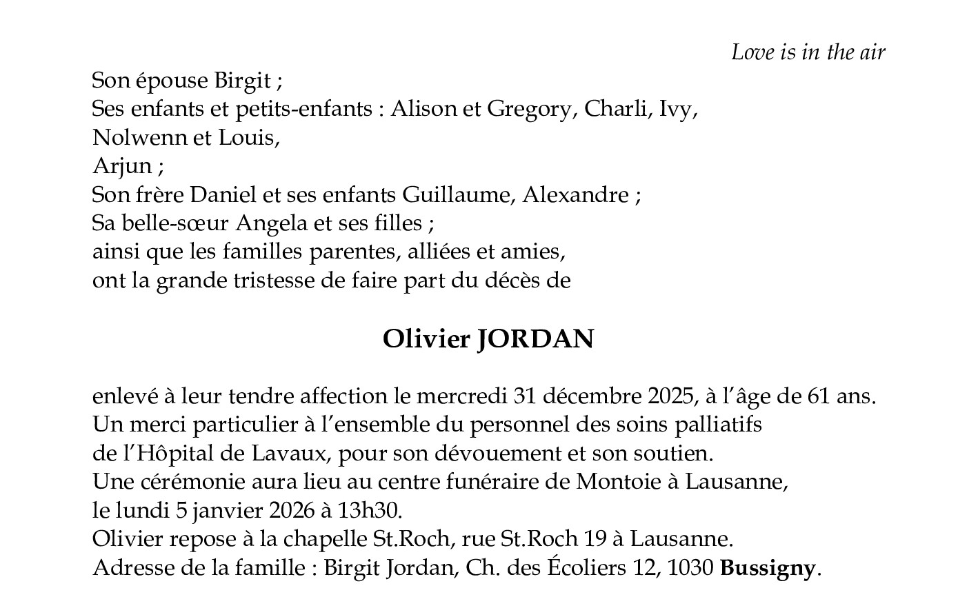 Avis mortuaires / Remerciements