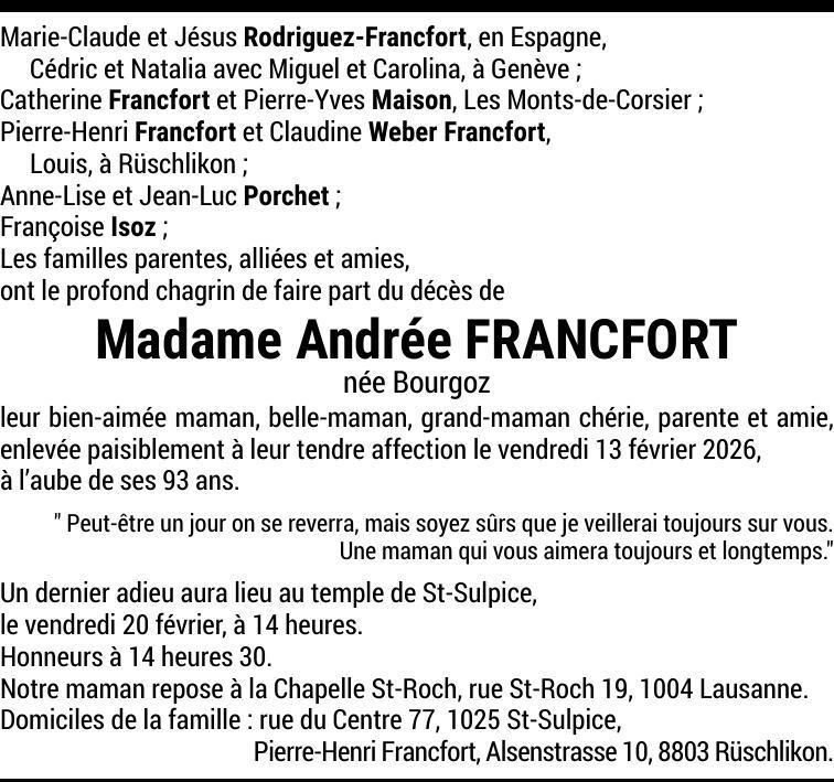Madame Andrée FRANCFORT