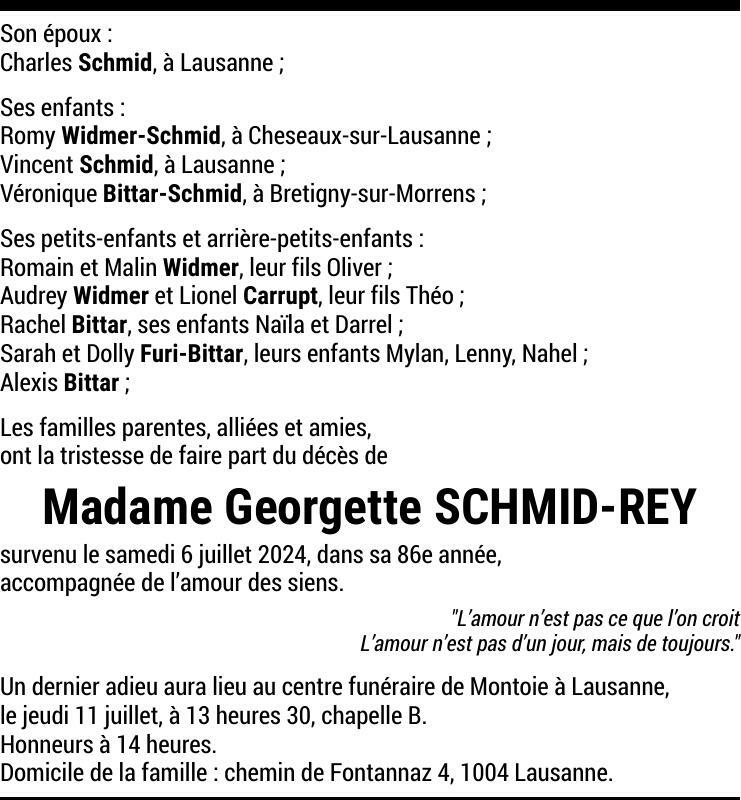 Madame Georgette SCHMID 19 oct. 1938 - 06 juil. 2024 Avis mortuaire PFG Partager sur: Galerie PreviousNext PreviousNext