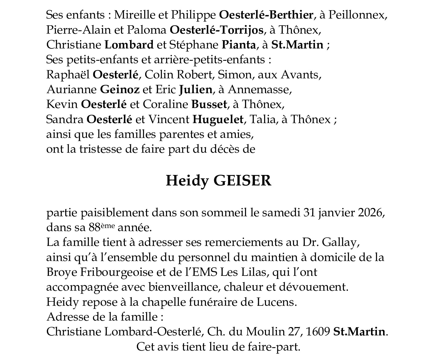 Madame Heidy GEISER