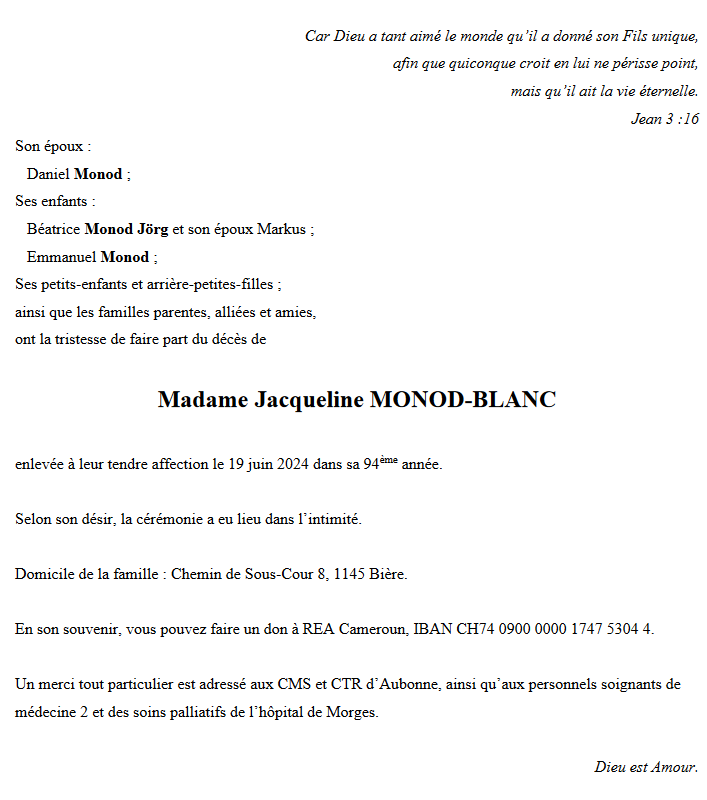 Madame Jacqueline MONOD-BLANC