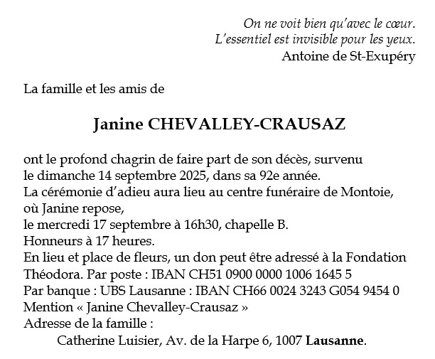 Madame Janine CHEVALLEY
