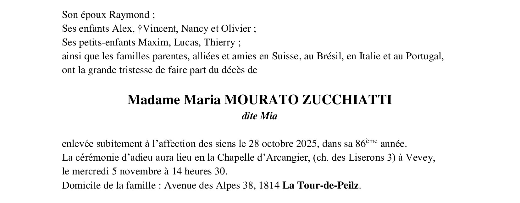Madame Maria MOURATO ZUCCHIATTI