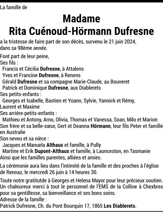 Avis mortuaires / Remerciements