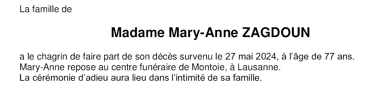 Madame Mary-Anne ZAGDOUN