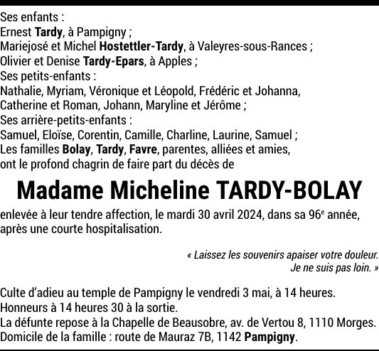 Madame Micheline TARDY-BOLAY