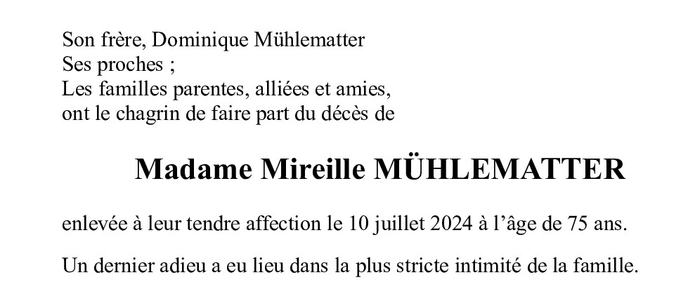 Madame Mireille MÜHLEMATTER