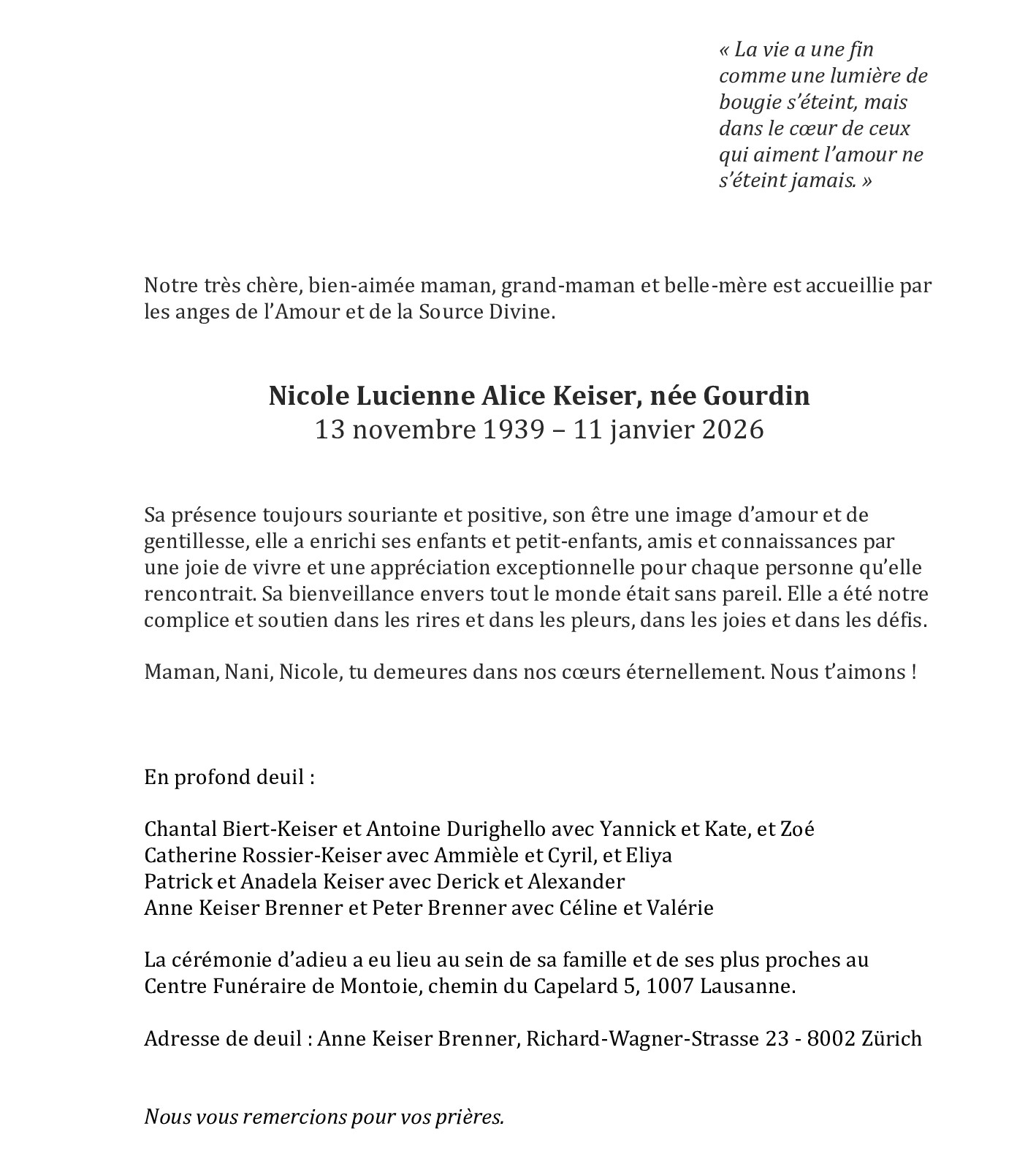 Avis mortuaires / Remerciements