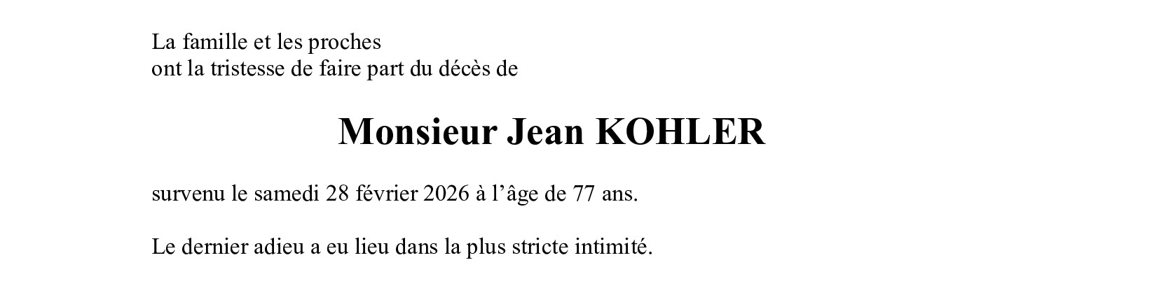 Monsieur Jean KOHLER