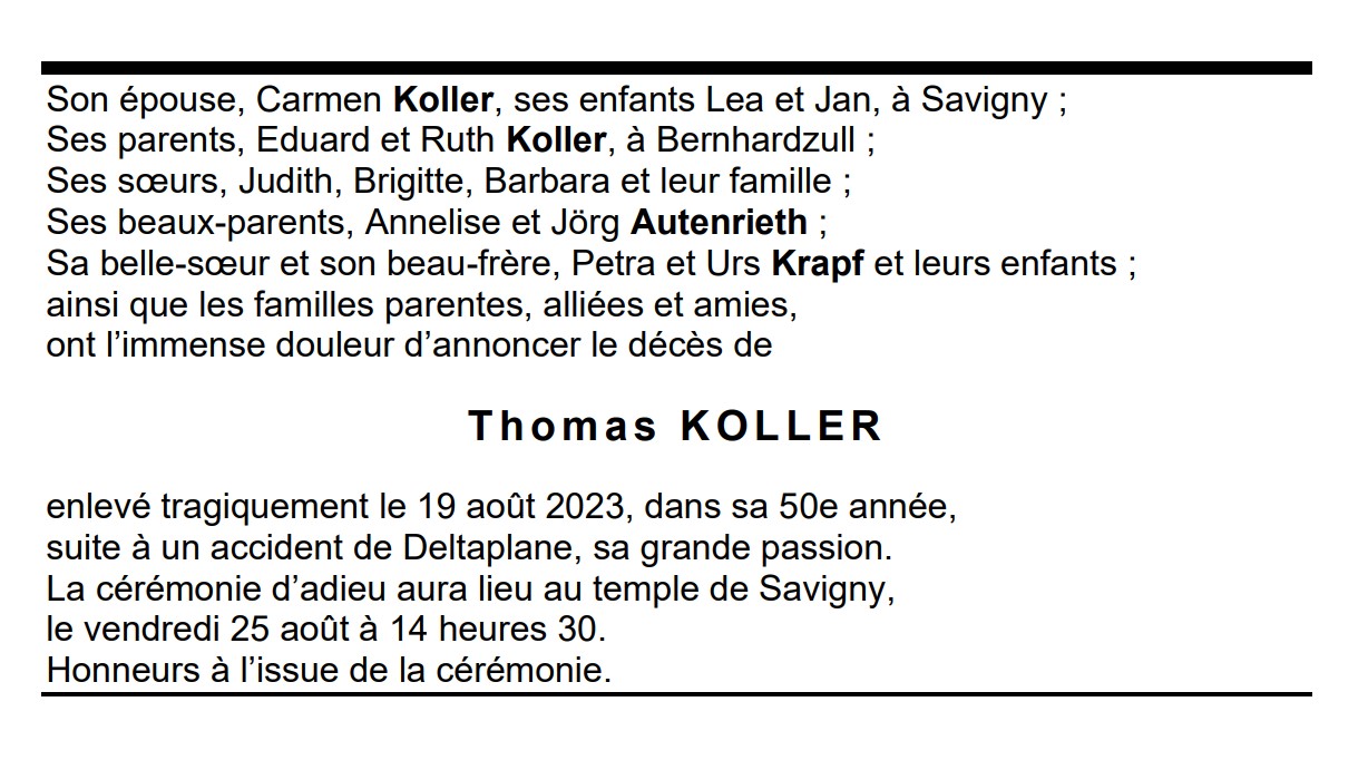 Thomas KOLLER 26 juin. 1974 - 19 aoû. 2023 Avis mortuaire PFG Télecharger PDF Partager sur: Galerie PreviousNext PreviousNext